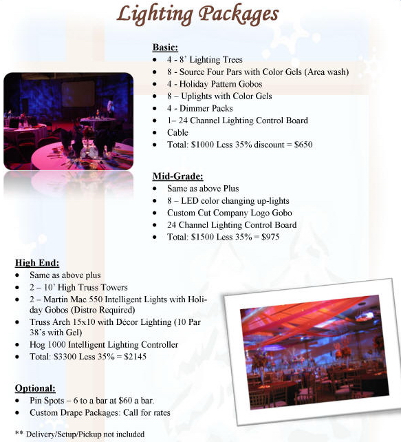 tons of 2K's and 550's),VariLites, Coemar Cycs, Studio